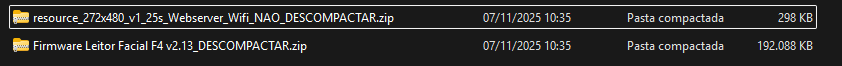 1) Novamente, através do Menu “Sistema” -> “Atualizar FW” do Web Server, selecione o arquivo resource_272x480_vX_XXs…NAO_DESCOMPACTAR.zip e clique em “Atualizar”: