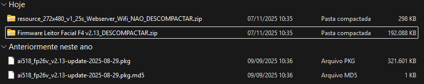 O Leitor Facial F4 Topdata® permite a atualização do firmware através do Web Server do equipamento.