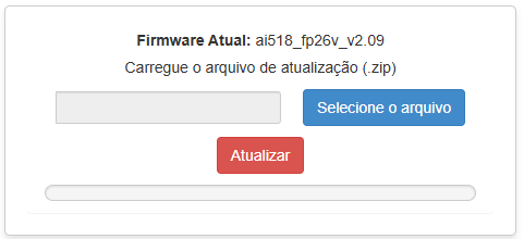 1) Através do Menu “Sistema” -> “Atualizar FW” disponível no Web Server do equipamento, selecione o arquivo ai518_fp26v_vX.XX-update-AAAA-MM-DD.pkg e clique em “Atualizar”: