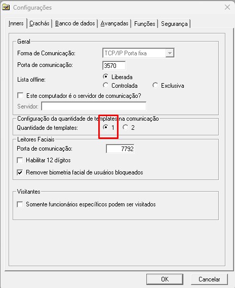 Como configurar no TopAcesso para enviar somente uma digital biométrica na Manutenção de Templates? Acesse o TopAcesso Cliente > Configurações > Configurações > em Quantidade de Templates selecione 1. Esse artigo foi útil? Sim Não Artigos relacionados O TopAcesso possui algum relatório que mostre o total de acessos dos usuários? Como funciona e quais são os detalhes referente a opção Identificador Facial no cadastro do funcionário no TopAcesso. “Acesso negado: Pessoa identificada, porém os dados de controle não estão corretos” ao tentar se identificar pelo leitor facial no TopAcesso 8 Como bloquear o acesso de um funcionário por um determinado período no TopAcesso Como executar o Atualizador Topacesso 6.3.7? TopAcesso não gera arquivo de bilhetes