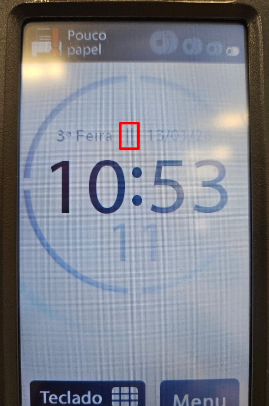 É possível verificar se o relógio está conectado à rede pela indicação de dois pipelines ( || ) na tela principal do relógio: