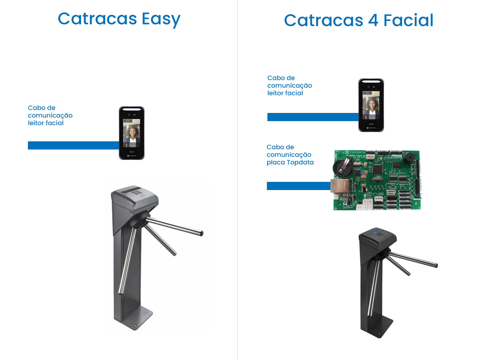 •A Catraca Easy só utiliza cabo de comunicação para o leitor facial.