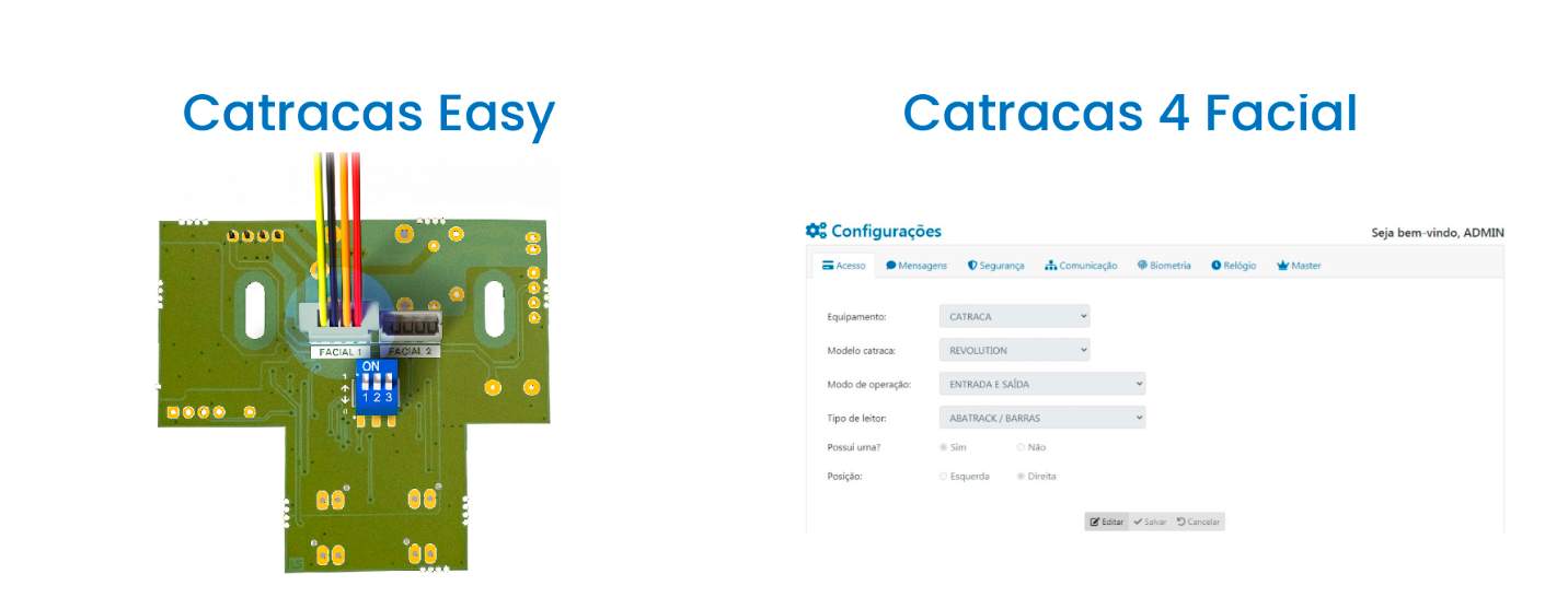 As principais diferenças entre a Catracas Easy e a Catraca 4 são: