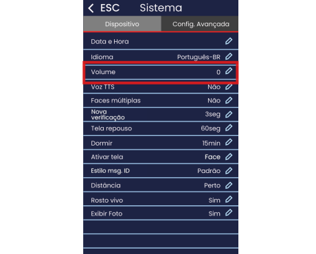 Engrenagem Menu > Sistema > Aba Dispositivo selecione a opção de volume.