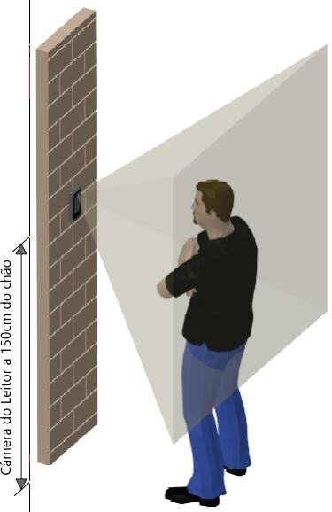 - Para reconhecimento de usuários de diferentes alturas, instale o leitor a 1,5 m do chão.