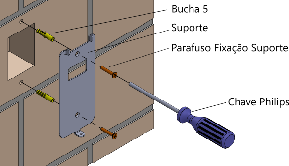 - Fixe o suporte na parede com os dois parafusos Philips fornecidos.