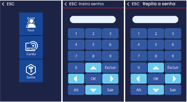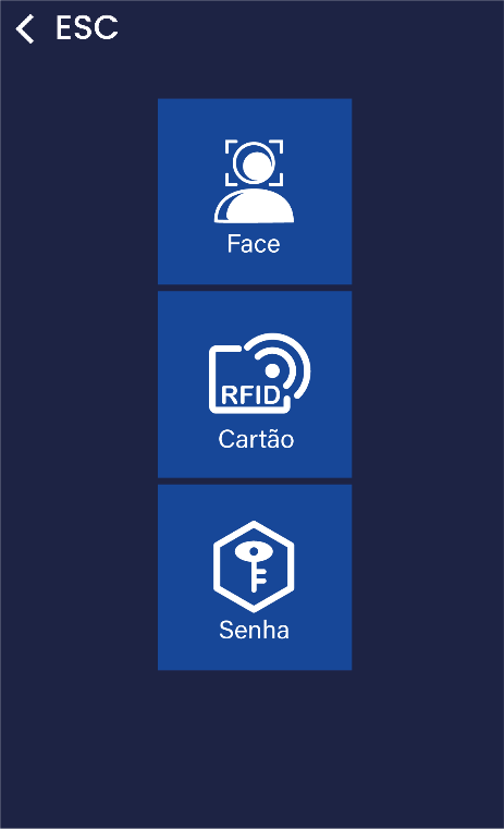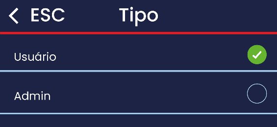 Administrador → deve ser usado somente para quem terá acesso ao menu e às configurações internas do equipamento.