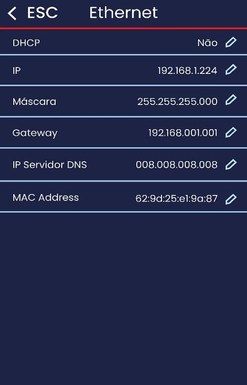 A configuração ETHERNET é utilizada para definir os parâmetros da rede para comunicação com cabo