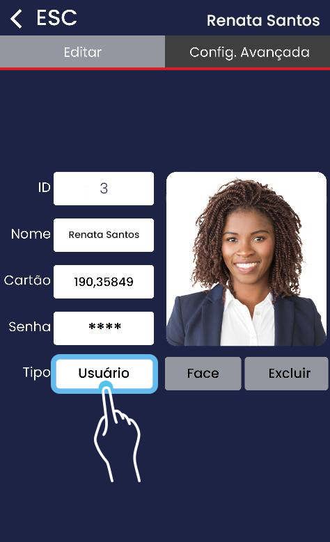 O campo Tipo define quais permissões cada pessoa terá dentro do equipamento.