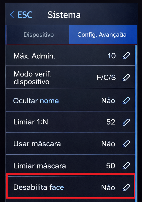 Ao tentar registrar um acesso/registro no Leitor Facial apresenta a mensagem “Desabilita Face”: