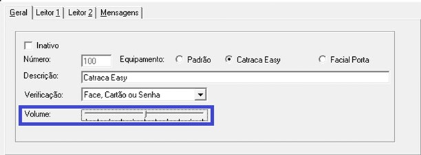 Nesse campo é configurado o volume dos avisos sonoros do leitor facial. Valor padrão “5”. Faixa permitida “0” a “10”.