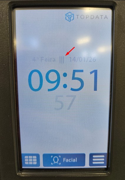 ( ||| ): Indica que o relógio está com acesso à rede e também conectado em uma base do nosso Topponto Web.