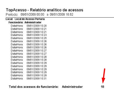 Sim, existe o relatório analítico de acessos. Ele vai trazer o total de acessos de cada pessoa dentro do período.