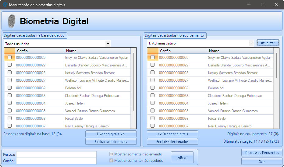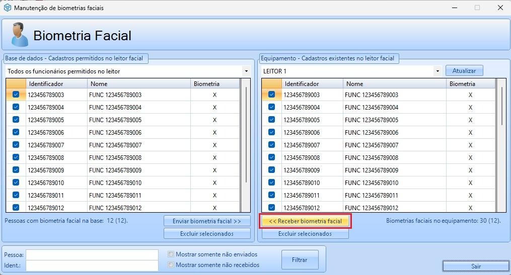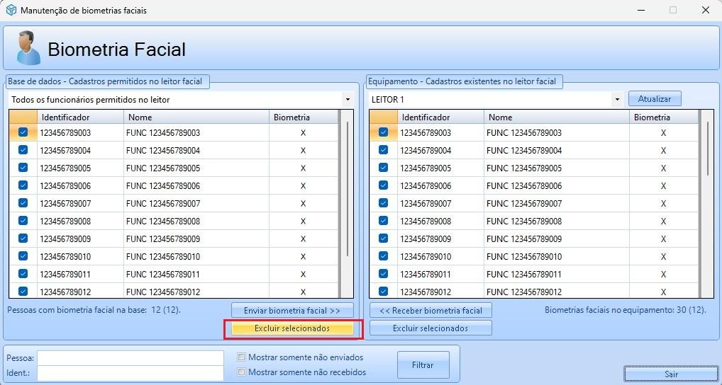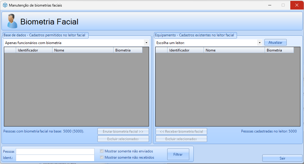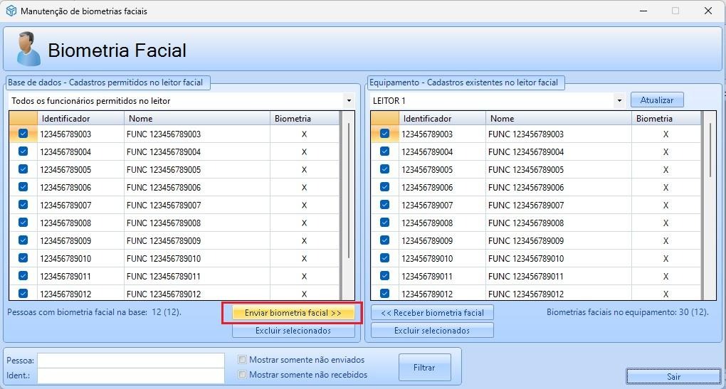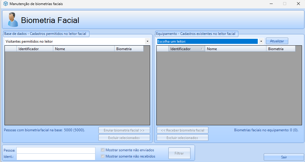 - Mostrar somente não enviados: exibe pessoas no banco, mas não no leitor