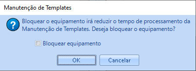 Escolha se o equipamento deve permanecer bloqueado ou liberado durante a manutenção de templates.