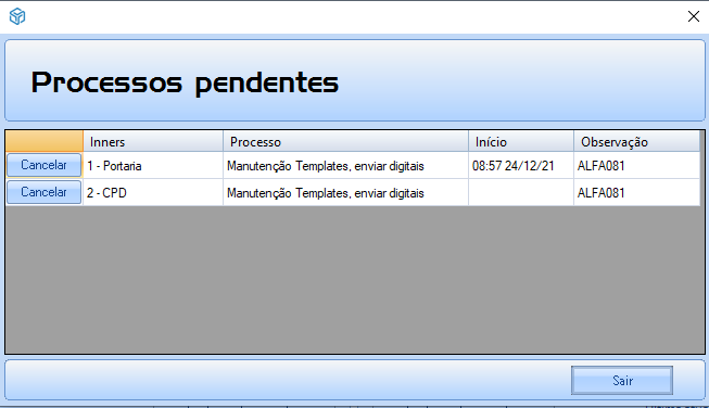 A tela de Processos Pendentes será exibida, mostrando as operações em andamento.