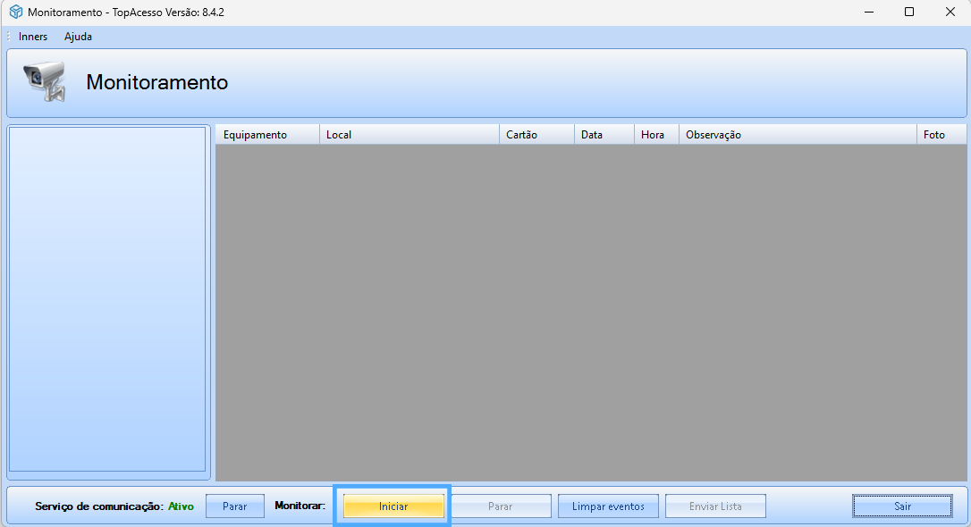 O botão Limpar eventos remove todos os registros exibidos na tela do Monitoramento.